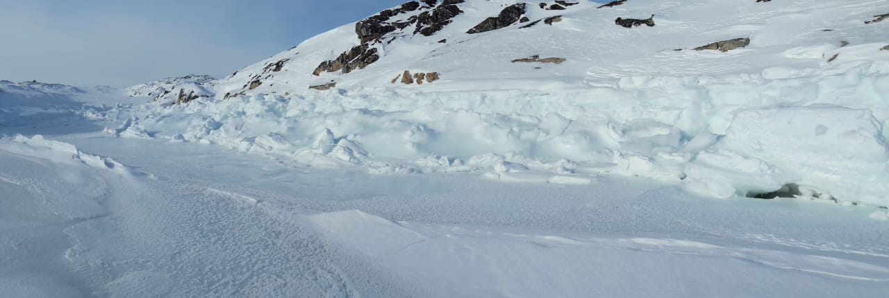 Avec le froid, la banquise est superbe et la neige crisse sous les pas. C’est un régal d’aller marcher, mais avec ces températures, on reste moins longtemps dehors … Minimum enregistré pour l’hiver: – 28°,5 C. Pour l’arrivée de Patrick que Lars, très gentiment, est allé chercher à Aasiaat avant hier. Lars qui depuis quelques jours cherchait à me dire quelque chose, mais bien que je lui dise Suu, il voyait bien que je comprenais pas ! En fait il avait retrouvé la roulette perdue de la moto-neige, quelque part dans l’île de Saqardlip !!!