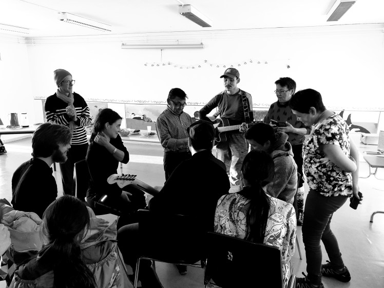 Dans la salle communale, tous les artistes sont prêts à rencontrer officiellement les habitants d’Akunnaaq. On sent un peu de trac mêlé à l’impatience.