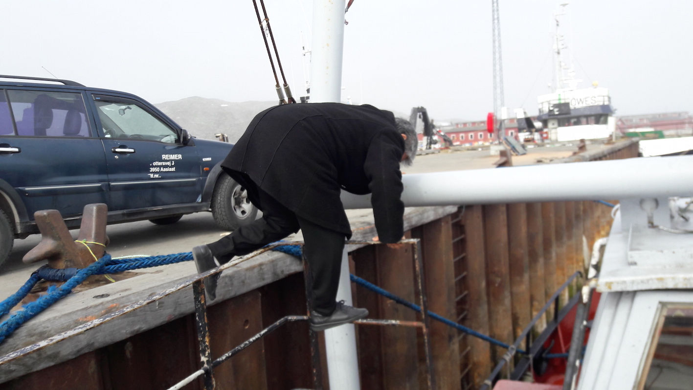 Par chance, Ito avait eu à la dernière minute la bonne idée de nous accompagner jusqu’à Qeqertarsuaq, d’où je vous écris ces lignes, pendant que la folle équipe, menée par Ito, gravit les pentes de la montagne pour rejoindre le peu qu’il reste de la calotte glaciaire …