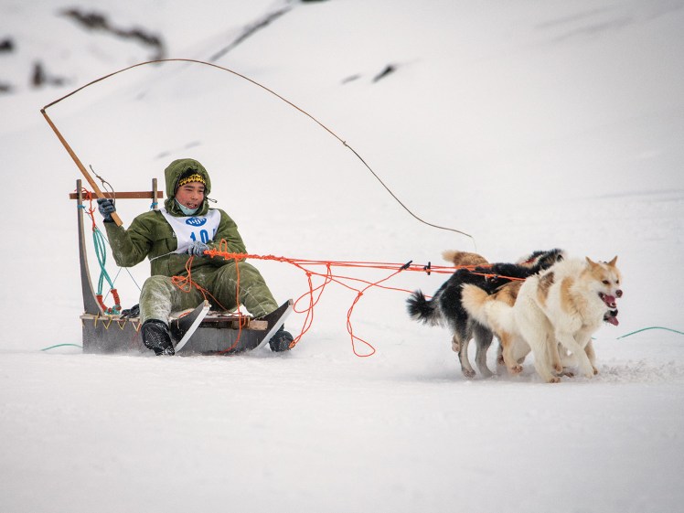 Aqqalu, Erneeraq et Pitaa ont eu vite fait de nous rejoindre sur la piste qui nous amenait à pied vers la zone d’eau libre où sont stationnés les bateaux, et après une petite demi-heure de route, nous étions à Aasiaat. A 12 h tapantes le départ était donné, départ un peu folklorique qui a d’ailleurs suscité pas mal de contestation (deux ordres différents de départ, et donc des départs en décalé). Le vainqueur est le frère de la femme d’Erneeraq ( ! ), ce qui fait qu’Akunnaaq est à l’honneur ! Verti s’est classé 7ème, et Juna 4 ème (sous réserve de disqualification). Les 5 premiers sont qualifiés pour courir à Ummannaaq à la fin du mois …