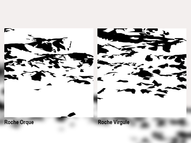 Dans ce monde minimaliste en teinte de blanc, de gris et de noir, c’est le monde minéral qui règne. Ici, c’est la forme des roches qui révèlent les spécifiés de chaque colline et de chaque lieu.