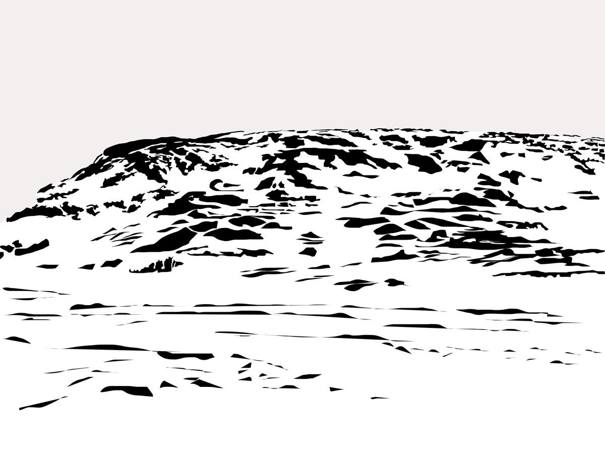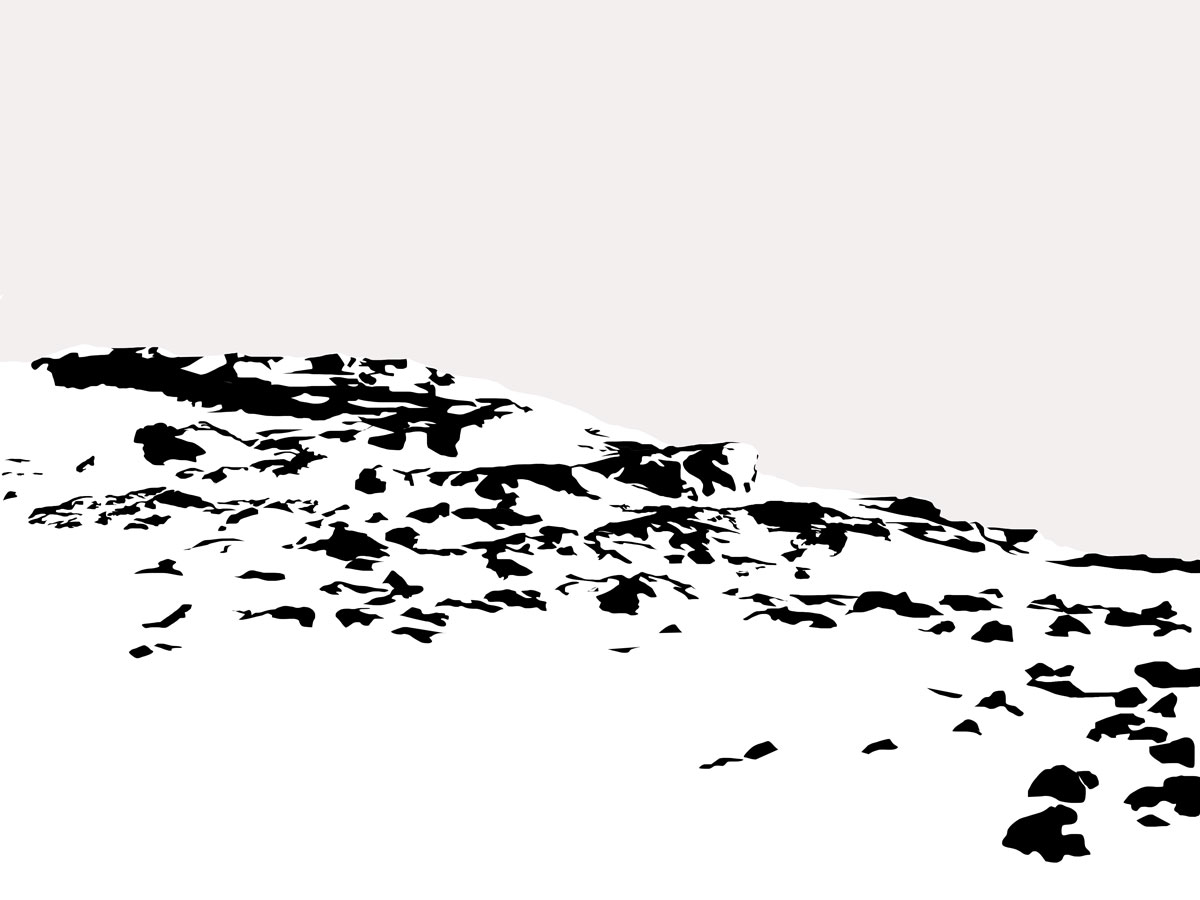 Dans ce monde minimaliste en teinte de blanc, de gris et de noir, c’est le monde minéral qui règne. Ici, c’est la forme des roches qui révèlent les spécifiés de chaque colline et de chaque lieu.