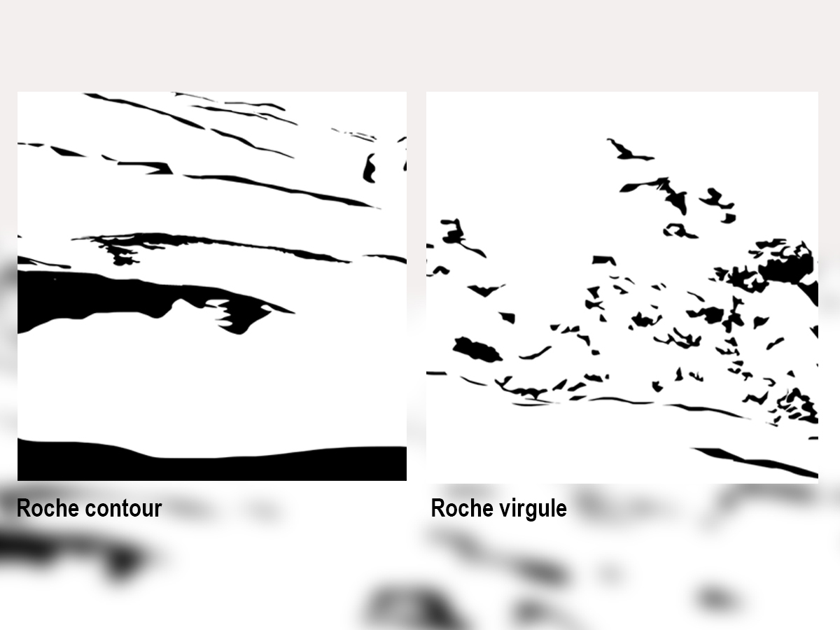 Dans ce cas, ce sont seulement les contours de la roche qui restent visibles, le reste restant camouflé sous la neige.
