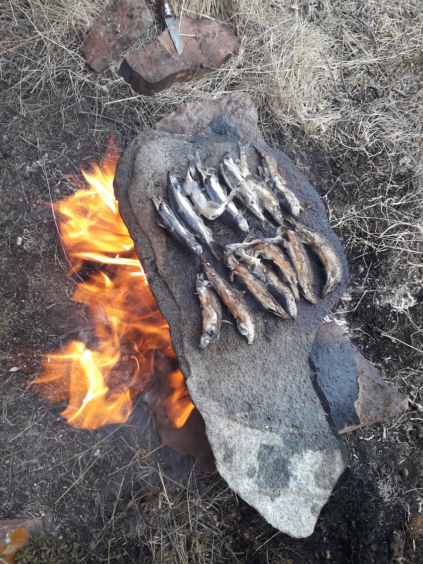 Puis, hier, Aqqalu est revenu avec deux grosses caisses et m’a dit : Philippe, ils sont à Nivaq. Alors, cap sur Nivaq ! Et un petit régal d’amassants cuits sur la pierre …