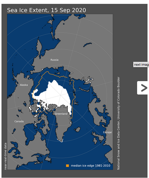 Le 15 septembre 2020, la banquise du Pôle Nord a atteint son nouveau minimum: 3,74 millions de kilomètres carrés. En clair, une peau de chagrin …