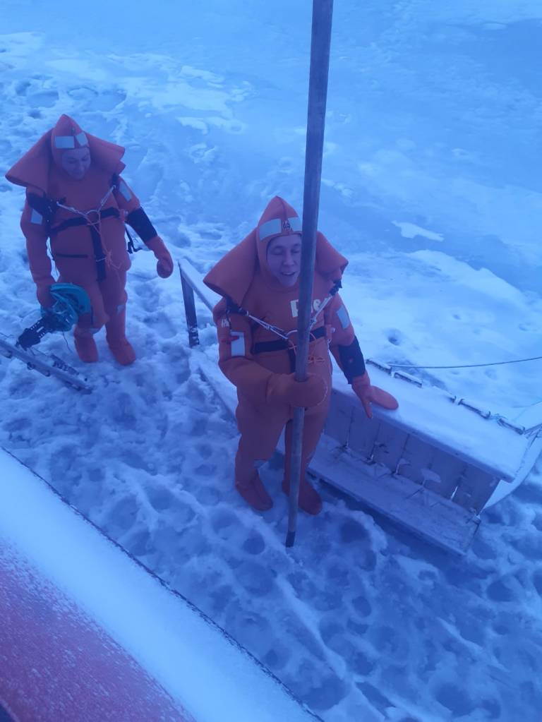 A peine arrivé·es, déjà les voilà déguisé·es en Casimir – direction la ville, la douche, la salle commune du Sømandshjemmet – on y ressemble qd on enfile la combinaison de survie.