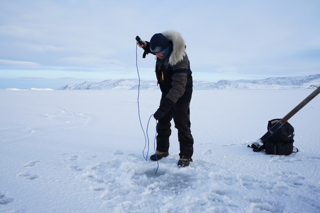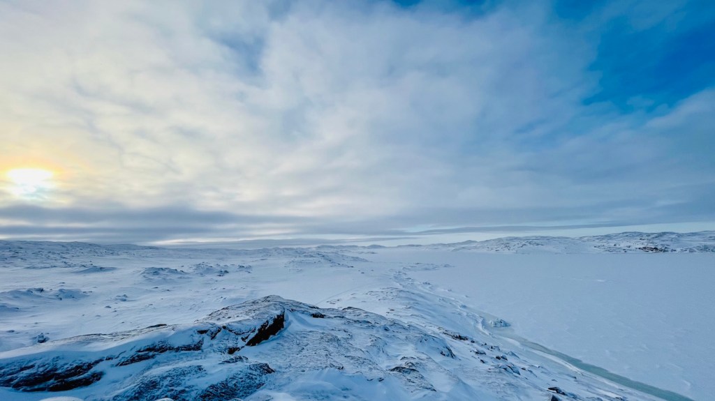 De l’autre côté du chenal, il y a l’île de Saqqardlip et sa source d’eau chaude aux propriétés miraculeuses … Enfin, chaude, façon de parler, l’eau sort à 5°C mais quand il fait -21° comme aujourd’hui, on relativise. Nous nous ravitaillons donc en eau douce avec des bidons de 10 litres qui nous durent plusieurs jours. Après avoir marché quelques kilomètres, nous les remplissons à la source et les rapportons au bateau.