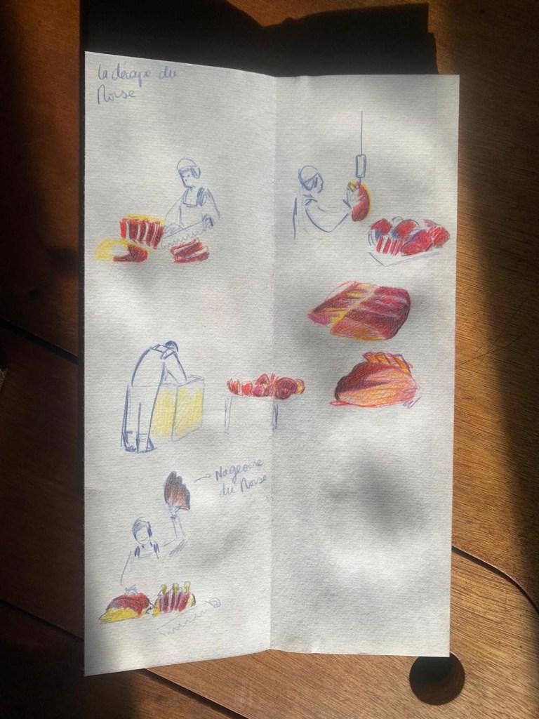 Déguster la viande des mammifères marins est assez désarçonnant pour un européen, en effet la chair est d’un rouge très prononcé et au palais, le goût est bien celui du poisson, leur alimentation.