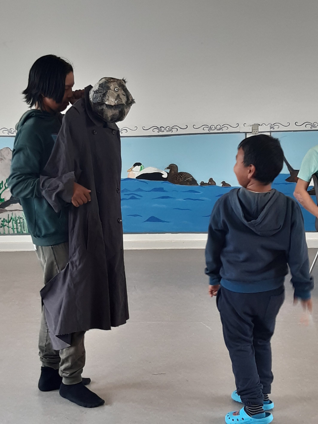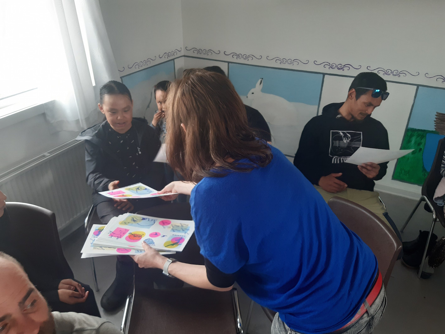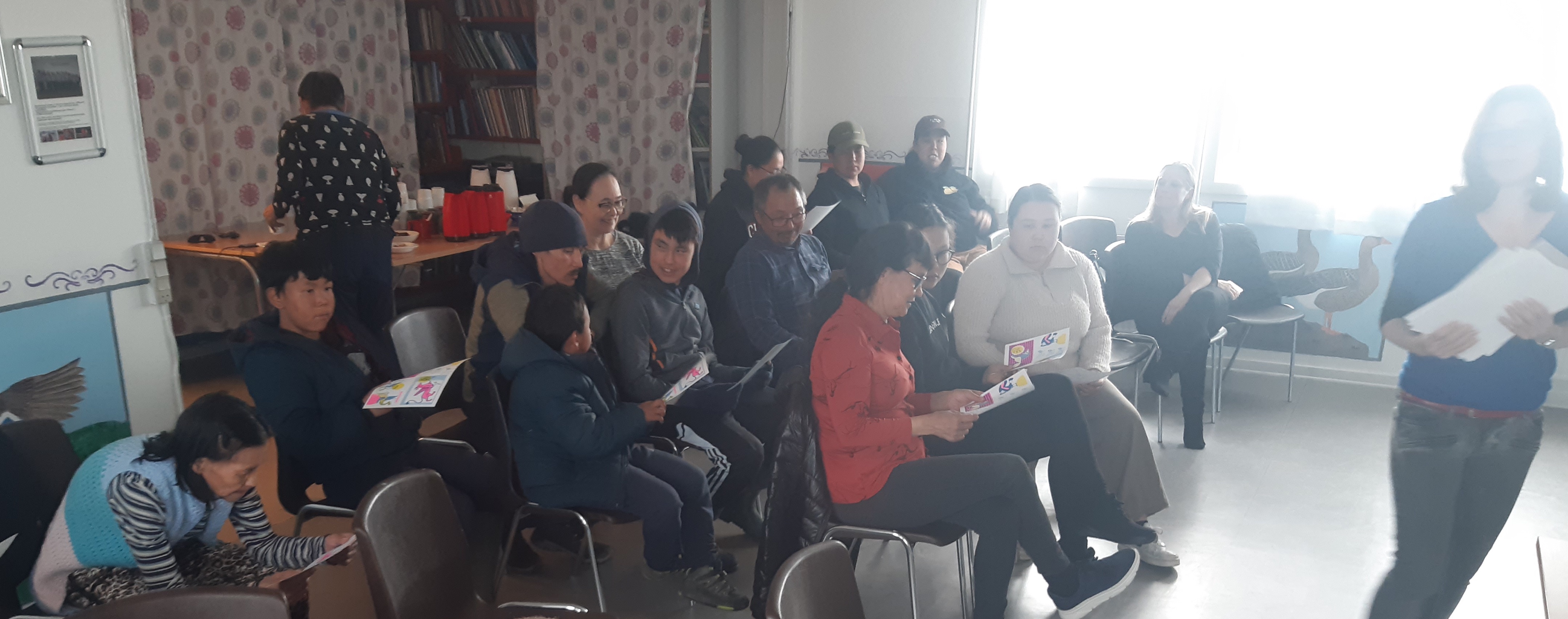 Hier soir, c’était la présentation aux habitants d’Akunnaaq, et surprise agréable, il y avait toujours pas mal de monde, environ la moitié du village ce qui n’est pas mal. J’avais quelque inquiétude à l’idée d’enchaîner ces deux résidences, mais il semble que cela ne pose aucun problème, et les gens ici sont tout aussi heureux de voir les nouveaux artistes qu’ils l’avaient été en connaissant l’équipe déjà repartie.