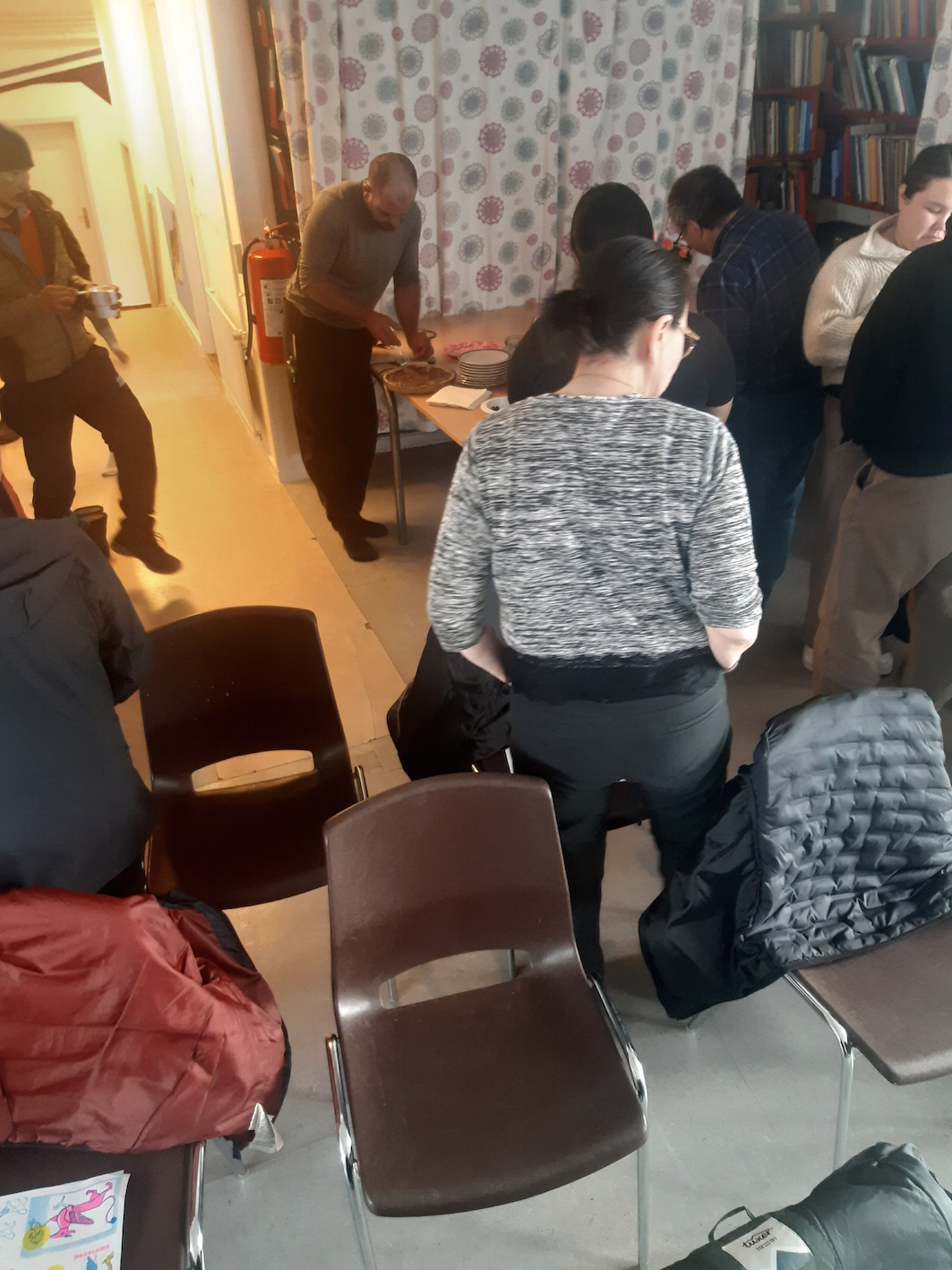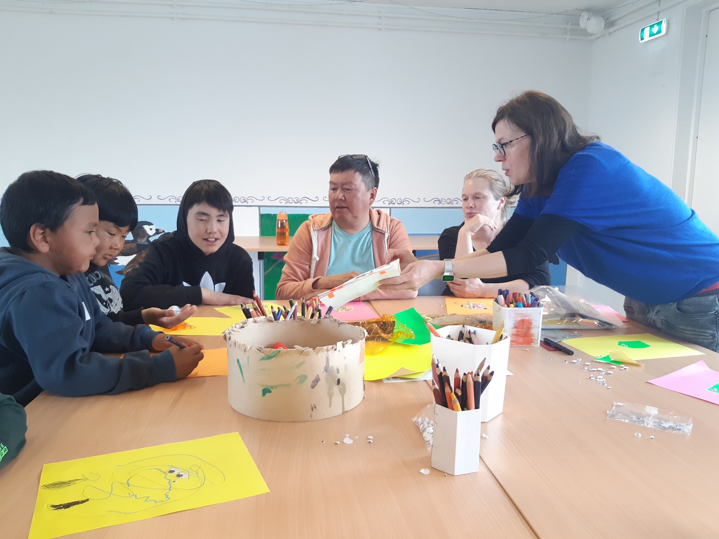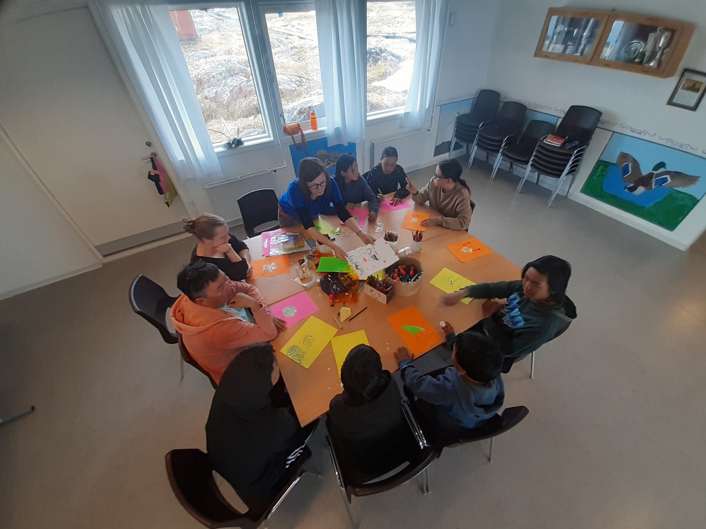 Hier soir, c’était la présentation aux habitants d’Akunnaaq, et surprise agréable, il y avait toujours pas mal de monde, environ la moitié du village ce qui n’est pas mal. J’avais quelque inquiétude à l’idée d’enchaîner ces deux résidences, mais il semble que cela ne pose aucun problème, et les gens ici sont tout aussi heureux de voir les nouveaux artistes qu’ils l’avaient été en connaissant l’équipe déjà repartie.