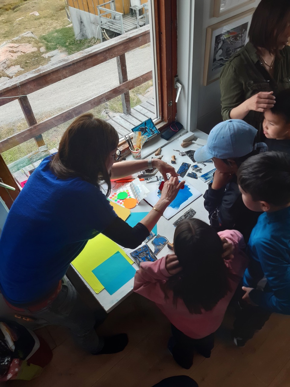 En témoigne cette superbe restitution, merci Anne, merci Aude, tenue pour la première fois à la Maison Culturelle Peter Larsen, et qui fût non seulement un succès par le nombre de participants, mais surtout par la qualité de l’échange. C’est véritablement une grande satisfaction dont je me réjouis, car je m’aperçois que du côté des artistes comme du côté des habitants d’Akunnaaq, tout le monde est heureux de ce qui est devenu un véritable partage.