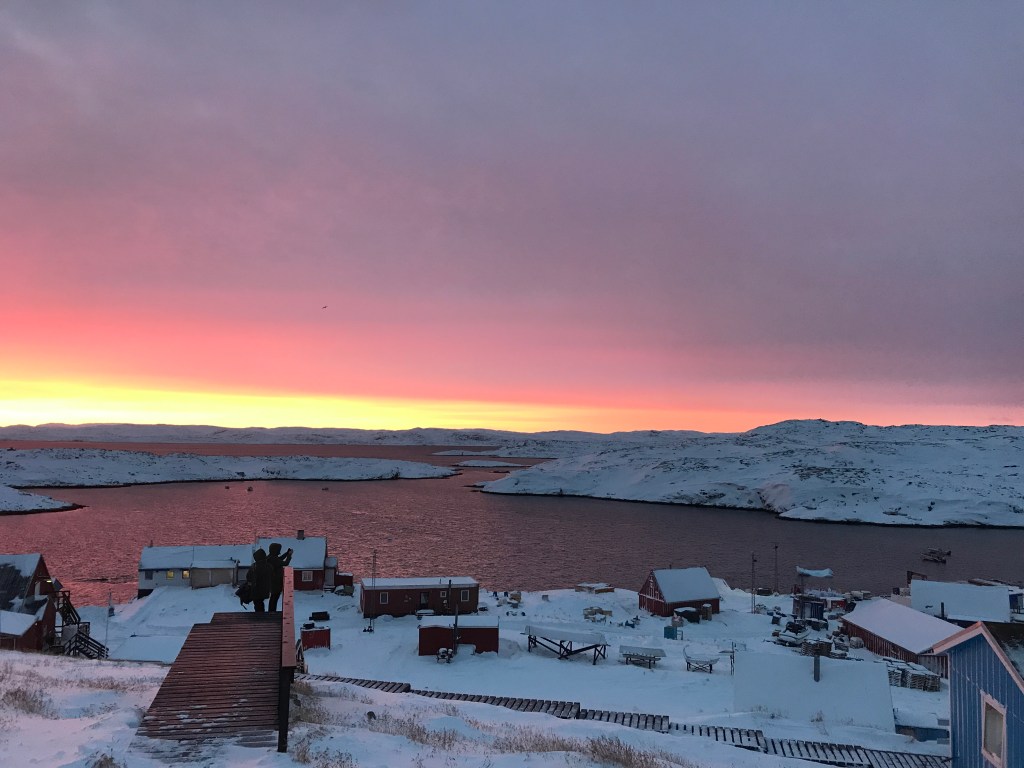 Le mois de novembre arrive à sa fin, il nous a fait vivre une belle et franche transition vers l’hiver. Nous avons vu le jour diminuer et avec lui les couleurs du ciel s’adoucir. Le froid s’est installé et les lacs figés ont craqué avec des bruits sombres et profonds. La neige s’est amassée doucement, lissant le paysage, comblant les trous, effaçant le noir des rochers. Les chiens de Rika ont fait leurs premières traces de traineaux. Puis, ces derniers jours, un blizzard soutenu a amené suffisamment de neige pour que les habitants d’Akunnaaq, impatients de faire un tour, sortent enfin leurs motoneiges.