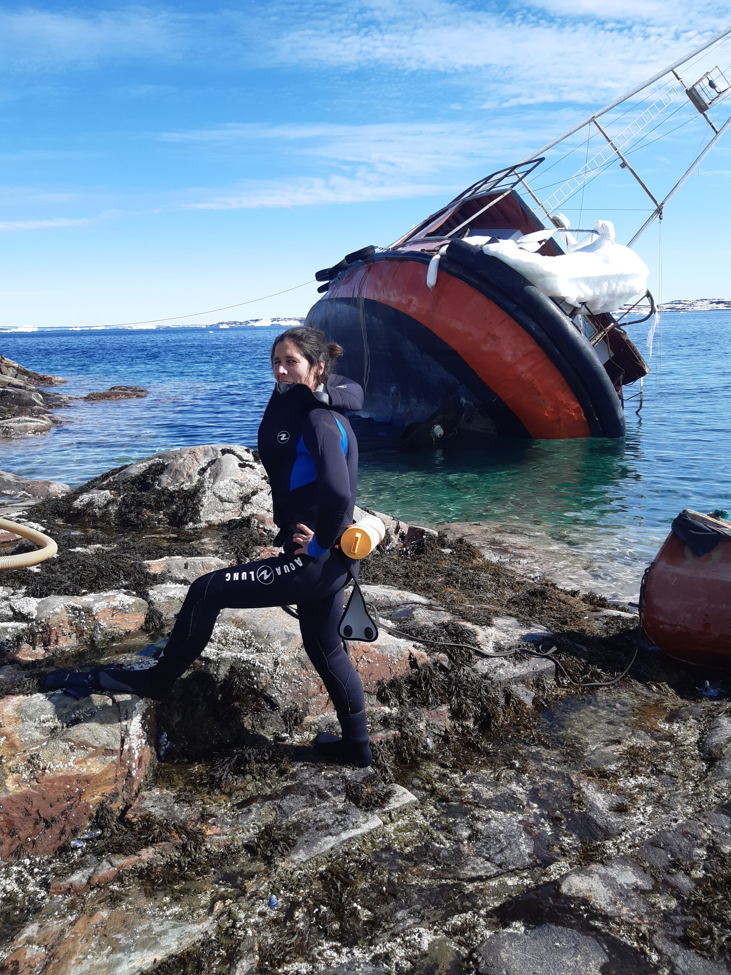 Nous avions passé la matinée à confectionner une ceinture de plongée, car la mienne est hélas restée à bord et impossible d’en trouver une à Aasiaat, même chez les pompiers. Des boites plastiques remplies de visseries et fixées une ceinture de cuir ont bien fait l’affaire …