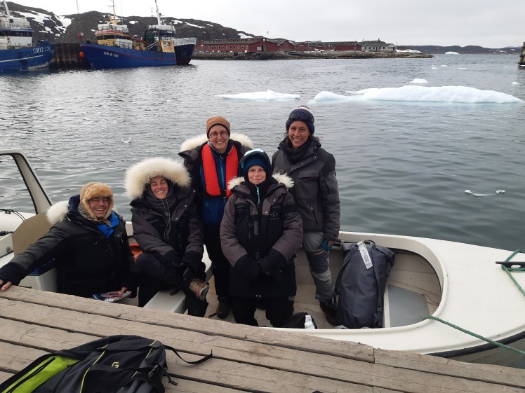 Claire, Vanessa, Julie et Patrice sont bien arrivés hier à Aasiaat, où nous les attendions avec Gwen. Grosse émotion à Copenhague pour Julie qui n’avait pas de passeport et qui a failli ne pas pouvoir embarquer … et comble de malchance son bagage en soute est parti à Ilulissat (une nouvelle fois, c’est la troisième depuis l’ouverture de l’aéroport de Nuuk …). Elle devrait le récupérer aujourd’hui …