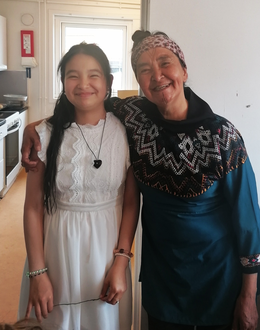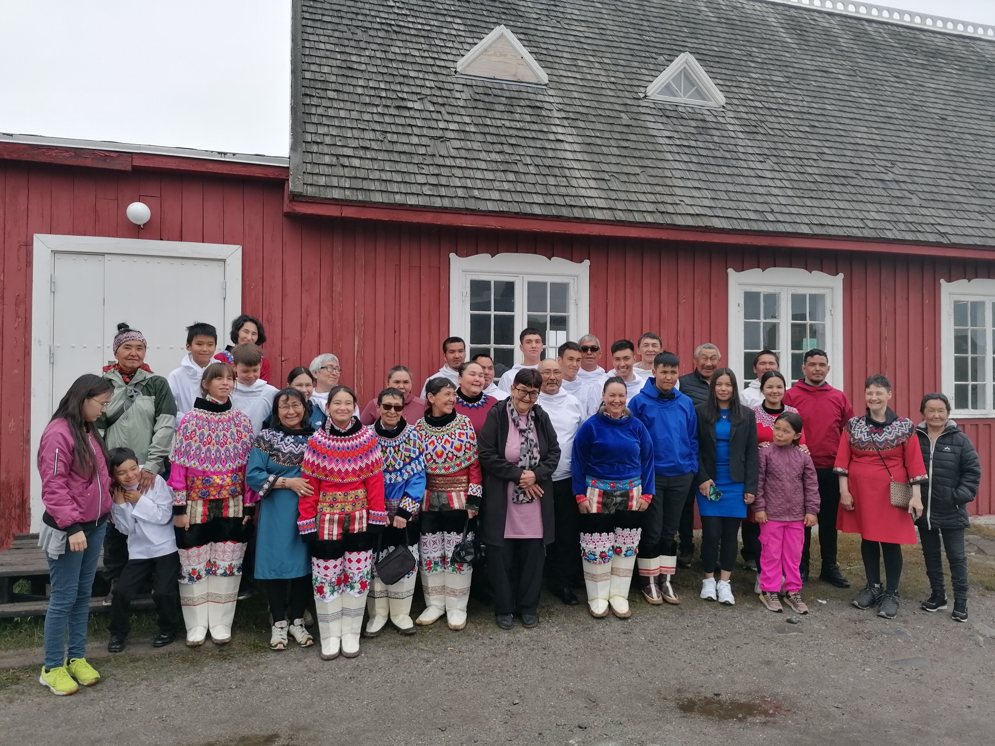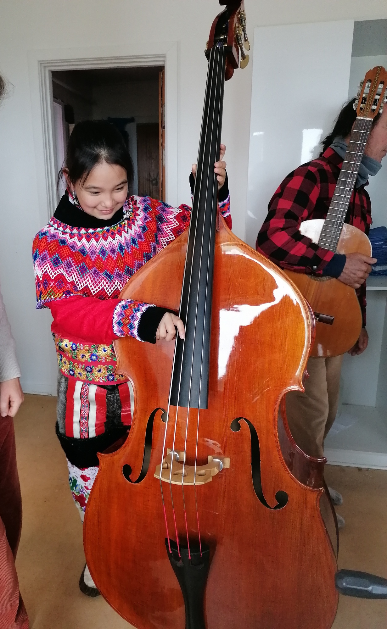 Merveilleuse journée hier avec le concert improvisé à l’occasion de la confirmation de la nièce de notre amie Maria. Nukaaraq, son amie Karla, les enfants du village mais aussi les « grands » ont découvert la harpe de Gwen, la contrebasse de Morgane, la flûte de Oïjha, le tambour de Maria, le mélodica de Clément et la guitare de Phil. Au répertoire, Henri Salvador, Edith Piaf, Brassens, Bossa Nova, Tango, et un chant groenlandais repris en choeur par l’assistance. Un magnifique kafémik accompagnait cette journée de fête en tous points réussis. Même le temps s’est mis au beau (alors que le départ au petit matin s’etait fait sous la pluie), et nous avons eu droit à un festival baleines sur la route du retour !