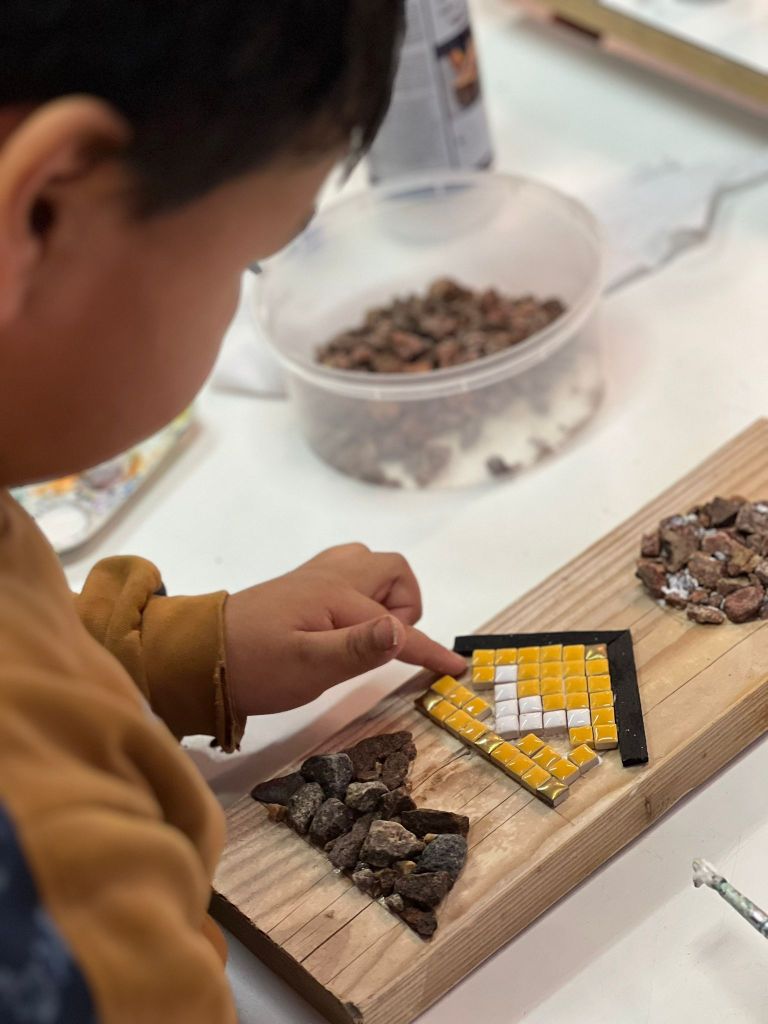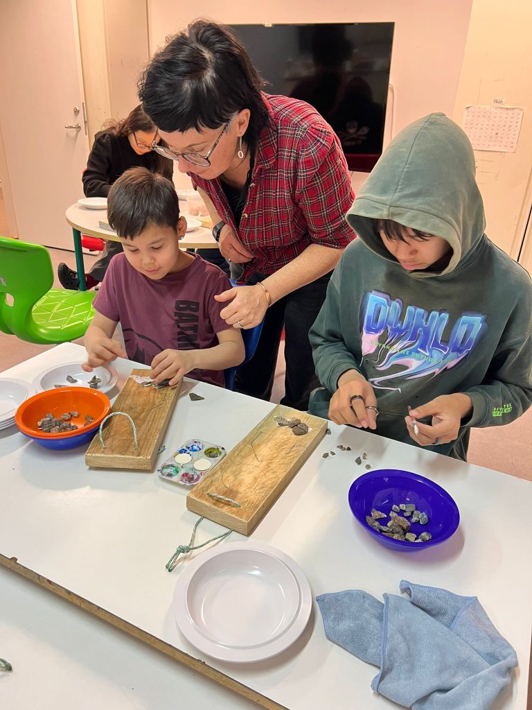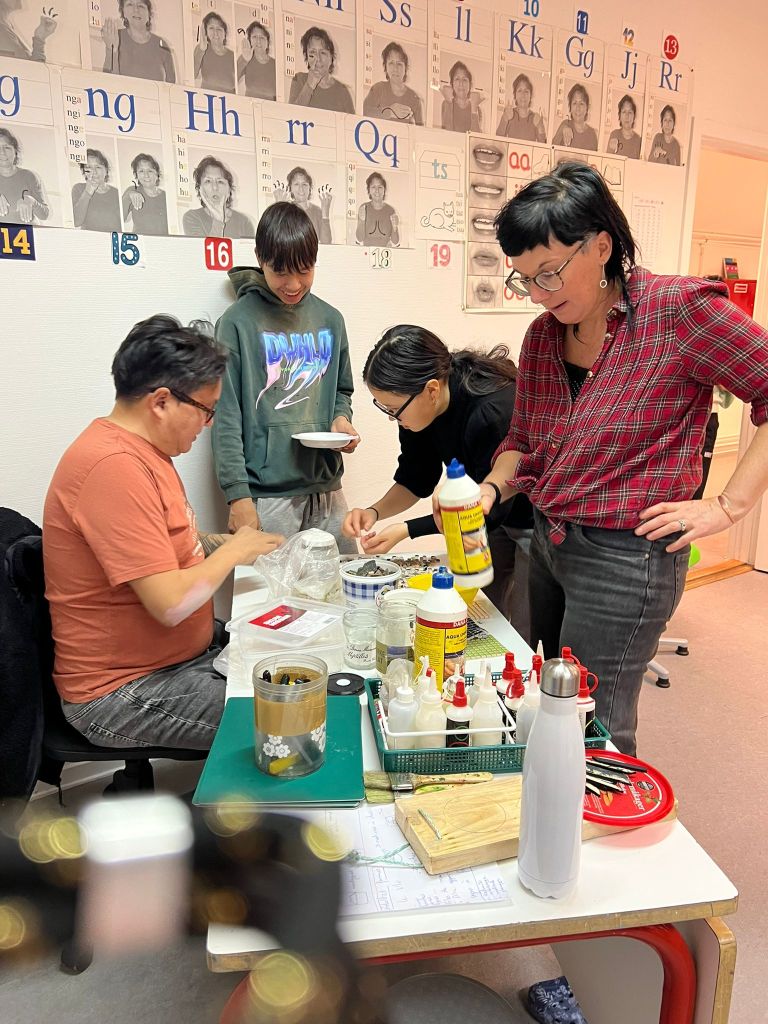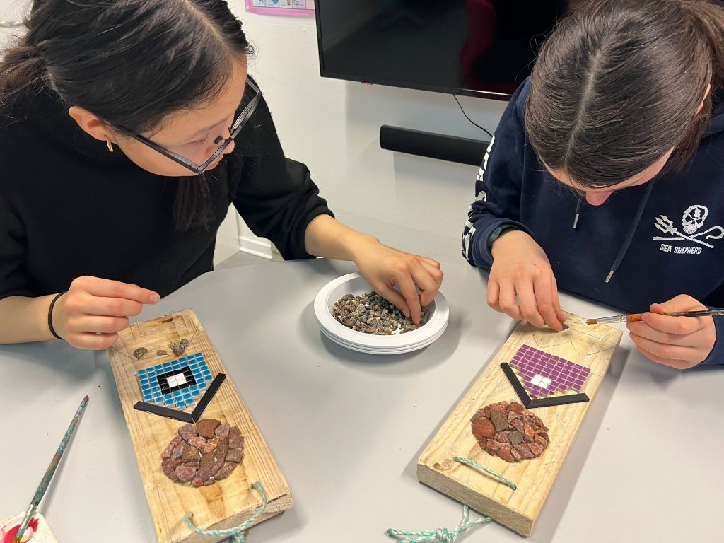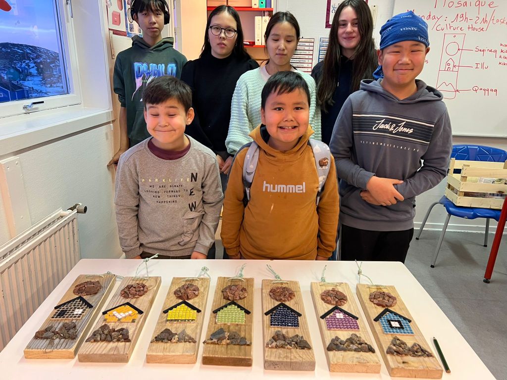 Stéphanie, qui attendait avec impatience l’arrivée d’un de leurs bagages perdus en cours de route – c’est hélas de plus en plus fréquent depuis que l’on a confié le travail d’aiguillage à l’œil infaillible d’une machine ! – a pu démarrer un atelier mosaïque à l’école. Tout le monde était ravi, les enfants en premier lieu, mais aussi Jens Piita, l’instituteur, pour qui cet atelier apportait un bol d’air frais !