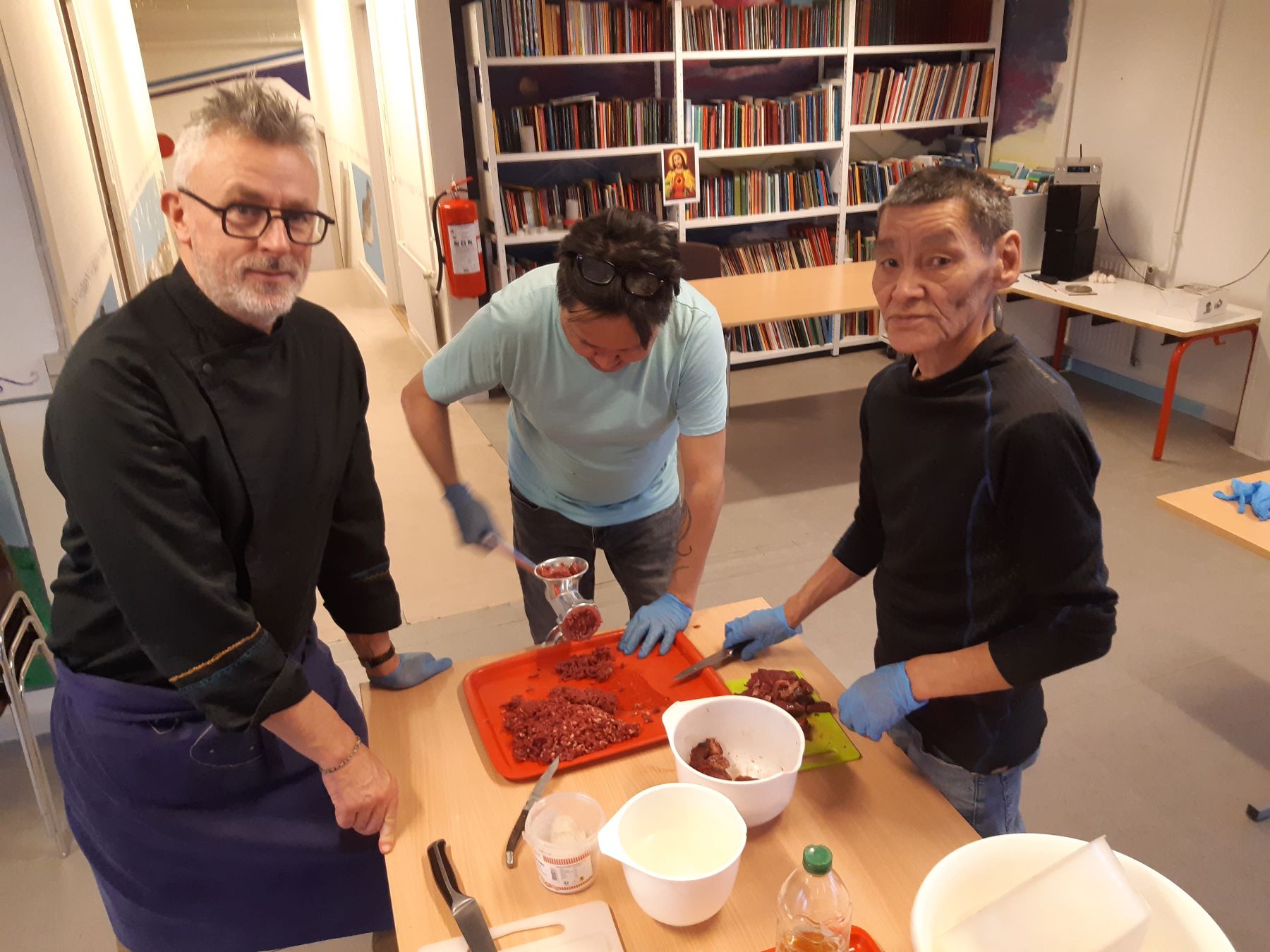 Un beau moment de partage alimentĂ© par les chasseurs d’Akunnaaq qui ont offert le produit de leur chasse pour ce nouvel atelier culinaire. Recette française sous la baguette de notre chef Marc Leray pour un barbecue improvisĂ© en plein hiver polaire.