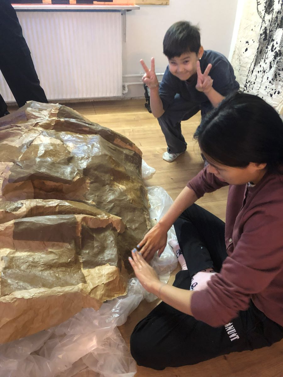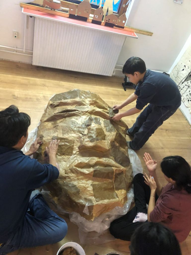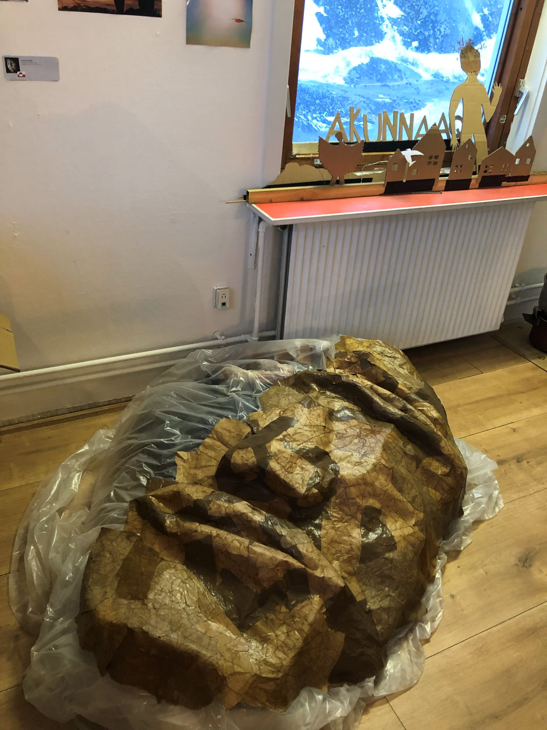 L’objectif est de rassembler les histoires de géants du Groenland, « Tunersuit », et construire ici un géant de papier mâché.