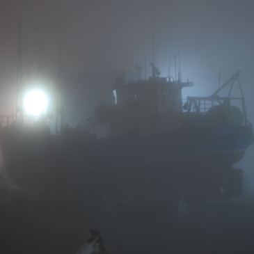 Aujourd’hui, Keven a fini de passer la 2 ème couche d’époxi sur le mât, nous avons peint le pont avec Vincent, plus quelques autres « bricoles » … ! et puis le brouillard s’en est venu … Magique !