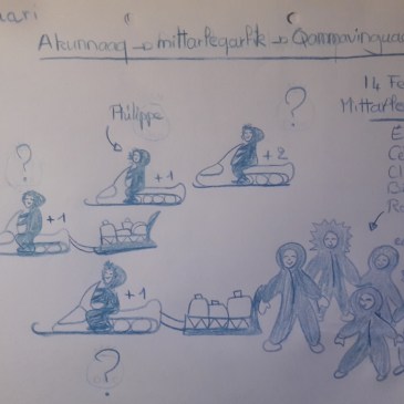 Bénédicte, Eric, Cléa, Cécile et Roxane sont arrivés sur le Manguier, prisonnier des glaces dans la petite baie de Qammavinnguaq, a proximité du village d’Akunnaaq (68°44’N – 52°21’W). Les premières images semblent confirmer qu’ils sont sains et saufs et de bonne humeur 🙂