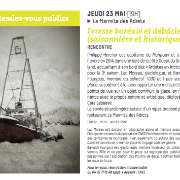 Le cycle Arpenteurs du monde initié par Scènes obliques dans le cadre de son projet CAIRNS se poursuit ce printemps et cet été autour de la poétesse, musicienne et artiste sonore Cora Labaeye pour une résidence de création et de rencontre dans le massif de Belledonne. Différentes manifestations sont prévues, dont une rencontre/débat autour de l’Arctique à … Lire la suite Résidence de création et de rencontre dans le massif de Belledonne, par Phil le marin