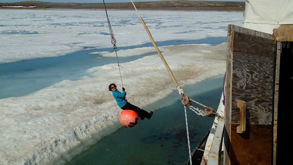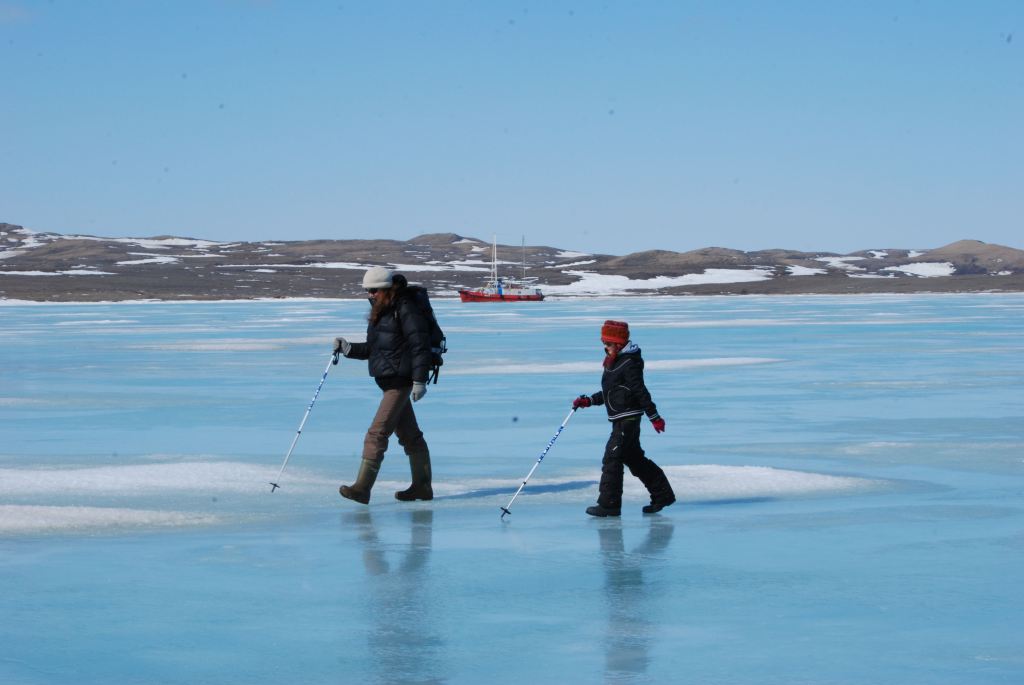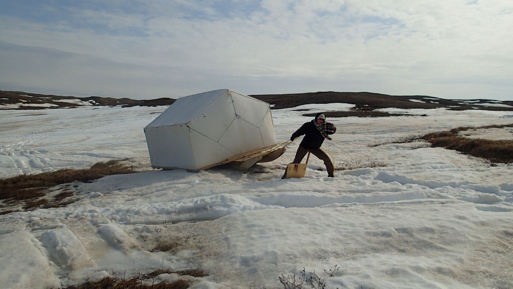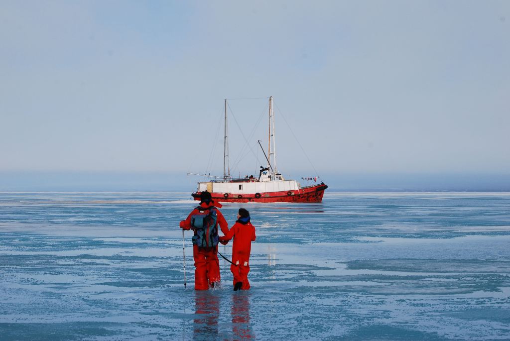 Se laisser volontairement emprisonner par les glaces dans l’Arctique Canadien. S’isoler dans des conditions extrêmes pour prendre le temps de réfléchir et de créer. Rencontrer et partager avec ceux dont c’est le quotidien. Telle est l’aventure givrée que Philippe, Cécile et Agathe ont vécu pendant l’hiver 2013/14. Le choix du lieu d’hivernage s’est porté sur Argo Bay, près du petit village Inuvialut de Paulatuk, dont les 300 habitants vivent principalement de la chasse, de la pêche et de l’artisanat. Aller à la rencontre de ces gardiens des glaces et de leur culture, et éprouver durant quelques mois des conditions de vie similaires ont permis de tisser des liens avec les habitants.