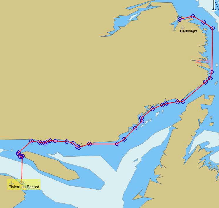 Première navigation : de Rivière-au-Renard (Québec) à Cartwright (Labrador)