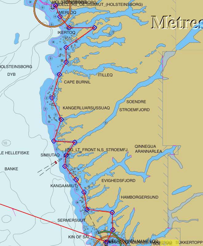 - La navigation dans l’«inside passage» le long des côtes du Groenland.