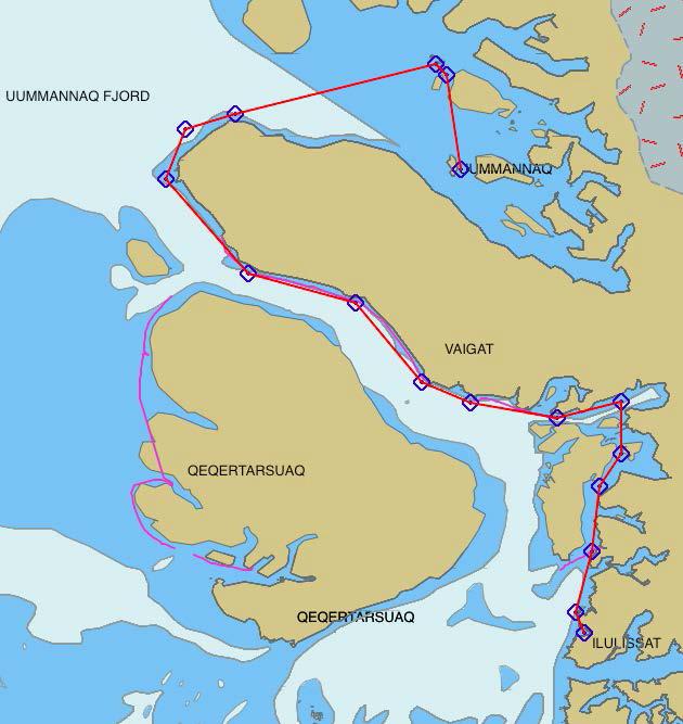 Note: compte tenu du changement du lieu d’hivernage, la sixième navigation n’inclura pas Uummannaq dans son périple et se terminera à Aasiaat, où le Manguier a prévu d’hiverner pendant l’hiver 2016/17.