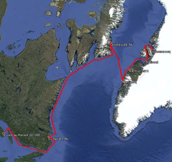 De la Gaspésie au Groenland via le Québec, le Labrador, l’Île de Baffin et le détroit de Davis